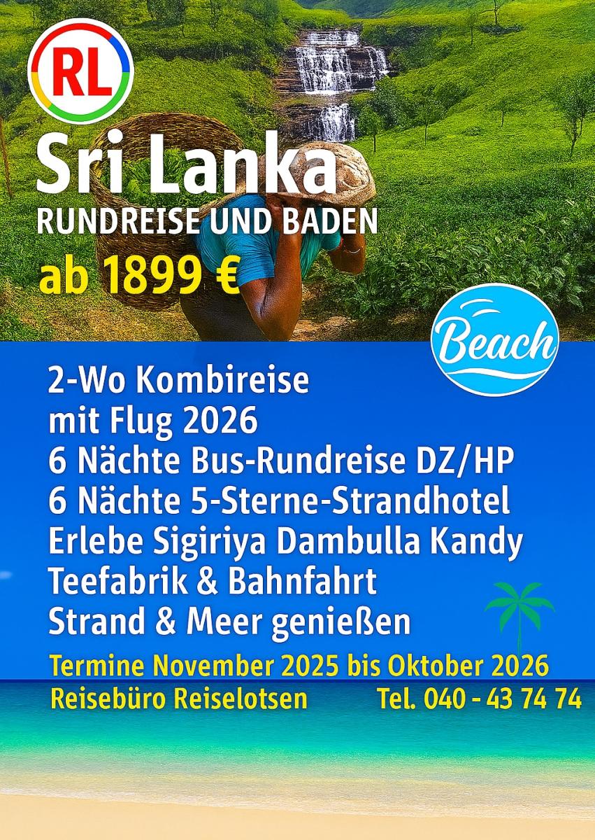 Sri Lanka ist mehr als nur ein Reiseziel – es ist ein Erlebnis für alle Sinne. Von der majestätischen Felsenfestung Sigiriya über die sattgrünen Teeplantagen bis hin zu spirituellen Tempeln und wilden Nationalparks: Die Insel bietet eine faszinierende Mischung aus Kultur, Natur und Gastfreundschaft.